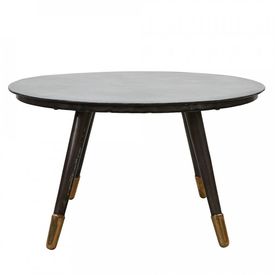 Ihastuttava sohvapöytä raudasta, jossa on messinkipintaiset jalat. Ulkonäkö saattaa vaihdella.