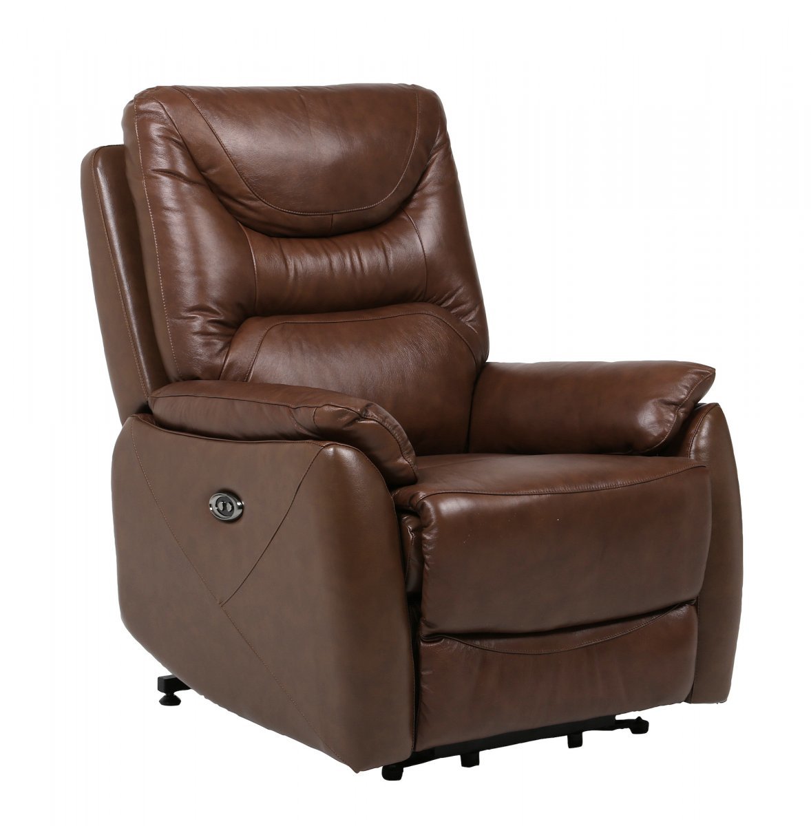 Ruskeassa Houston-recliner-nahkatuolissa on sähkömekanismilla säädettävä selkänojan kallistus ja jalkatuen nosto. Ostoksille!