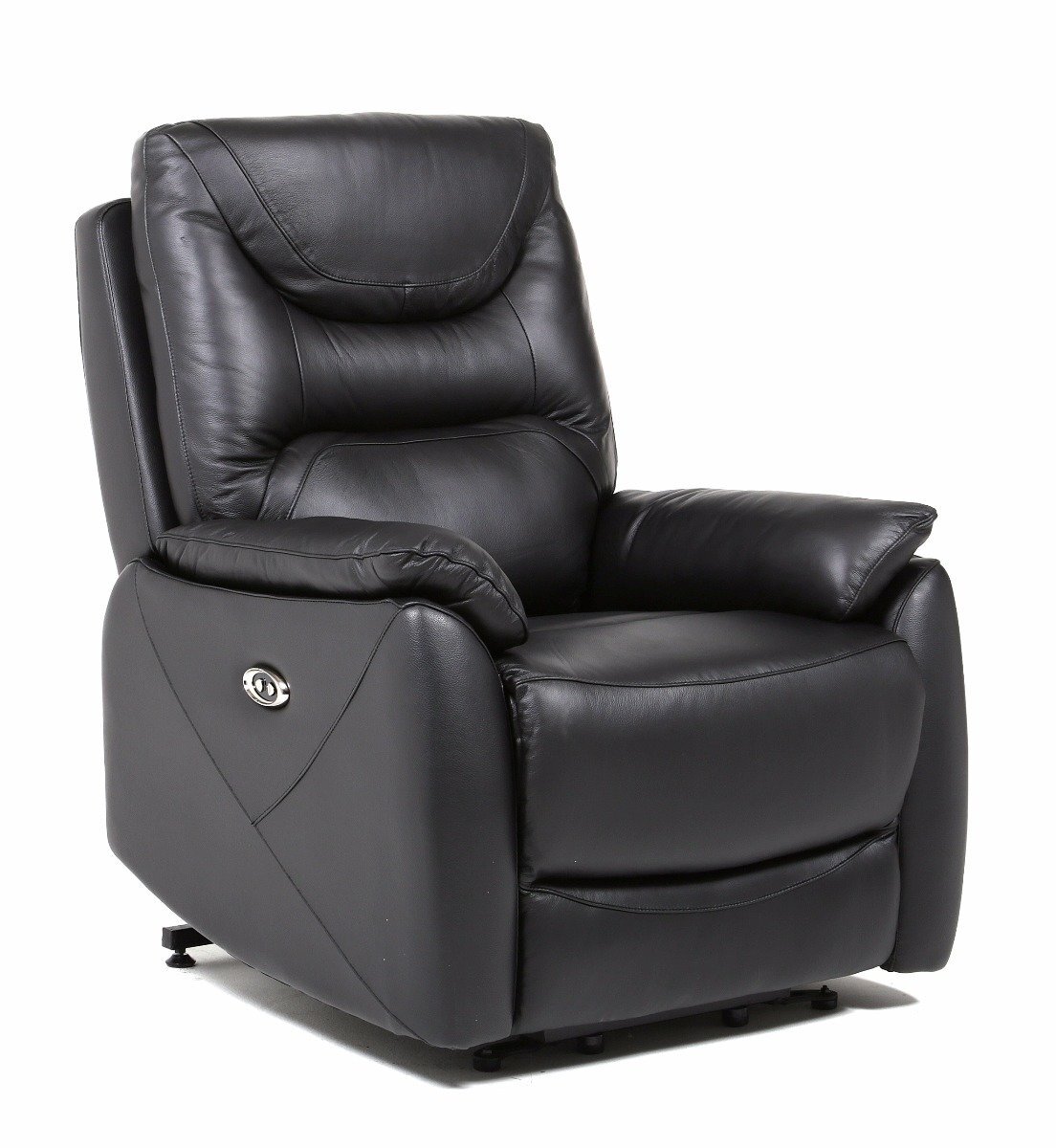 Musta Houston recliner -tuoli on nahkaa. Sähkömekanismilla säädettävä selkänojan kallistus + jalkatuen nosto. Tilaa!