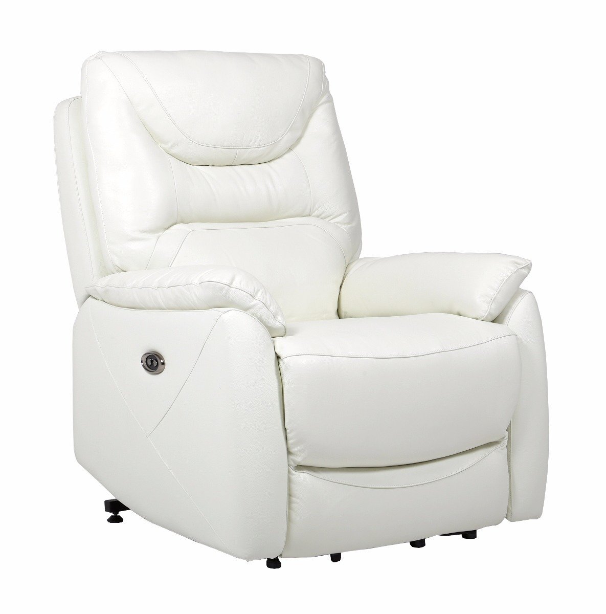 Valkoinen Houston recliner -tuoli on nahkaa. Sähkömekanismilla säädettävä selkänojan kallistus + jalkatuen nosto. Tilaa!