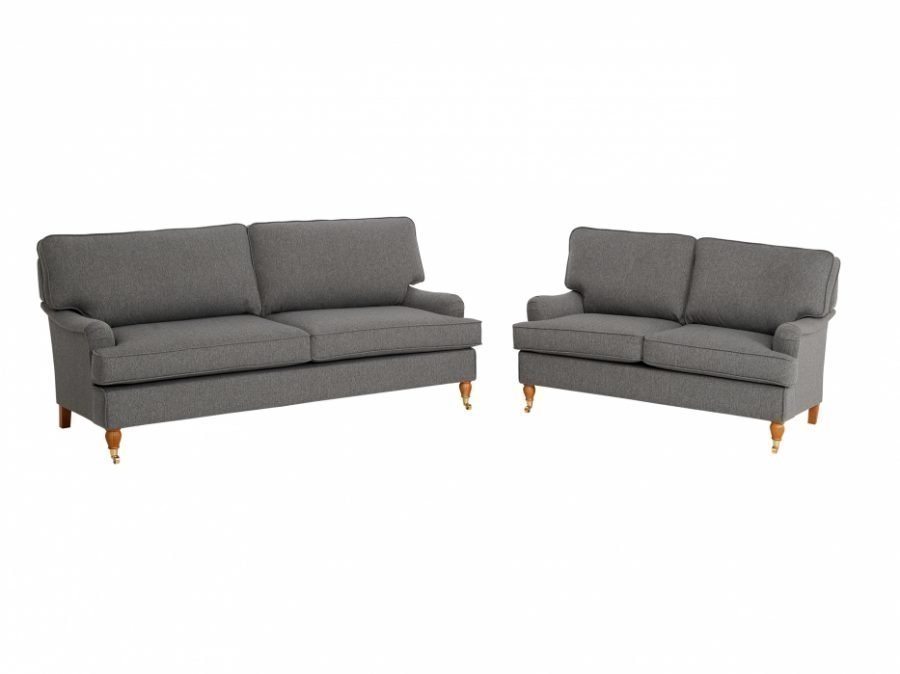 Harmaa Howard-tyylinen sohvaryhmä. Huonekalujen tyynyt ovat täytetty vaahtomuovilla ja kuitutäytteellä, jotta saataisiin ihanteellinen istumismukavuus. Runko… Lue lisää »