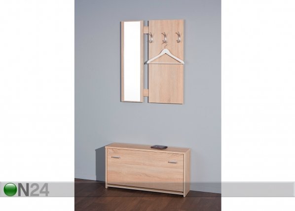 Eteisryhmä on valmistettu sonoma tammen sävyisestä melamiinipinnoitetusta kalustelevystä – ryhmään sisältyy jalkinekaappi ja… Lue lisää »