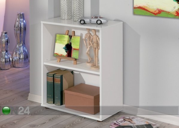 Valkoinen hyllystö on valmistettu melamiinipinnoitetusta kalustelevystä – yksi välihylly säädettävällä korkeudella – neljä… Lue lisää »