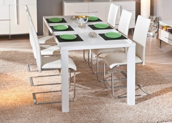 Moderni ruokapöytä on valmistettu valkoisesta korkeakiiltoisesta mdf-kennolevystä – pöytälevy on kätevästi 60 cm… Lue lisää »