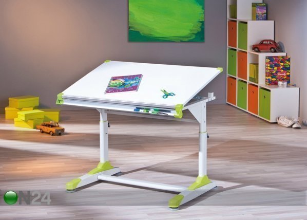 Valkoinen kirjoituspöytä on valmistettu melamiinipinnoitetusta MDF-kalustelevystä – pöytälevyn korkeus ja kaltevuus ovat säädettävissä… Lue lisää »