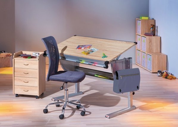Sonoma tammen sävyinen kirjoituspöytä on valmistettu melamiinipinnoitetusta kalustelevystä – pöytälevyn korkeus ja kaltevuus… Lue lisää »