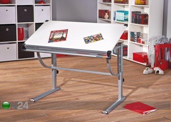 Kirjoituspöytä on valmistettu valkoisesta melamiinipinnoitetusta kalustelevystä – pöytälevyn korkeus ja kaltevuus ovat säädettävissä… Lue lisää »