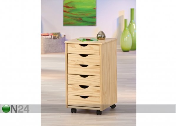 Pyörillä varustettu laatikosto on valmistettu lakatusta männystä – kuusi laatikkoa – laatikoiden avaamiseksi… Lue lisää »