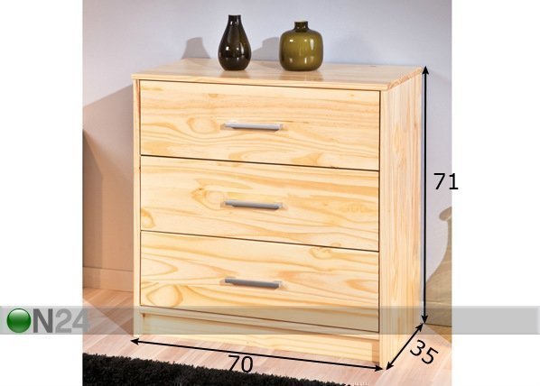 Lipasto on valmistettu lakatusta männystä – kolme metallikiskoilla avautuvaa laatikkoa – kalusteen pinta… Lue lisää »