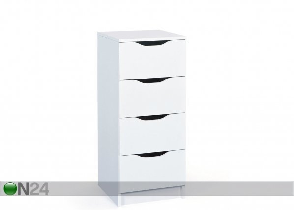 Lipasto on valmistettu valkoisesta kalustelevystä – neljä metallikiskoilla liukuvaa laatikkoa – etupaneeleissa on… Lue lisää »