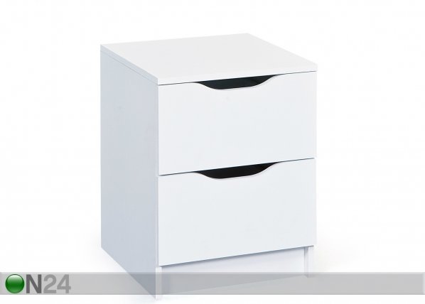 Valkoinen, pyörillä valmistettu laatikosto/yöpöytä on valmistettu kalustelevystä – kaksi metallikiskoilla liukuvaa laatikkoa -… Lue lisää »
