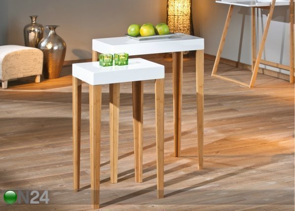 Retrotyyliset sohvapöydät on valmistettu valkoisesta korkeakiiltoisesta mdf-kalustelevystä – jalat on valmistettu bambusta -… Lue lisää »