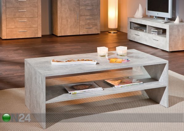 Sohvapöytä on valmistettu betonisävyisestä melamiinipinnoitetusta kalustelevystä – pöydässä on kaksi tasapintaa – tuotteella… Lue lisää »