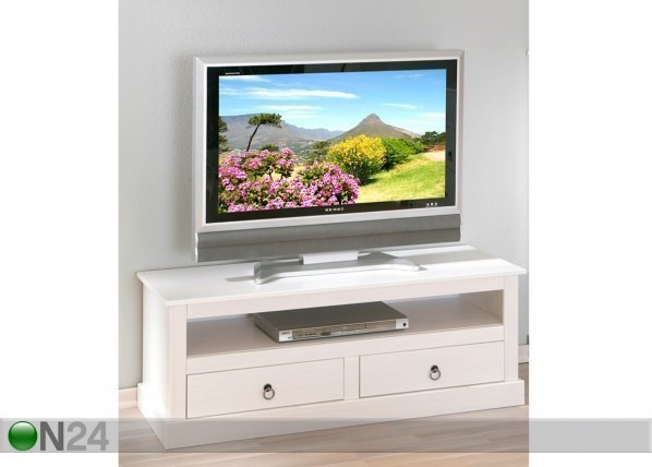 Tv-taso on valmistettu valkoiseksi maalatusta massiivipuusta – kaksi metallikiskoilla avautuvaa laatikkoa – kalusteen… Lue lisää »