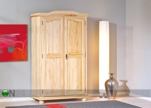 Vaatekaappi on valmistettu lakatusta männystä – kaksi saranoilla avautuvaa ovea – yhden oven… Lue lisää »