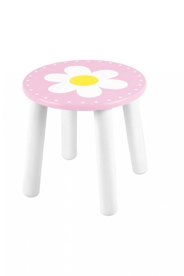 Jakkara lastenhuoneeseen, Jabadabado. Istuimessa kukka. – Väri: roosa ja valkoinen – Istuinkorkeus: 23 cm – Materiaali: puuta