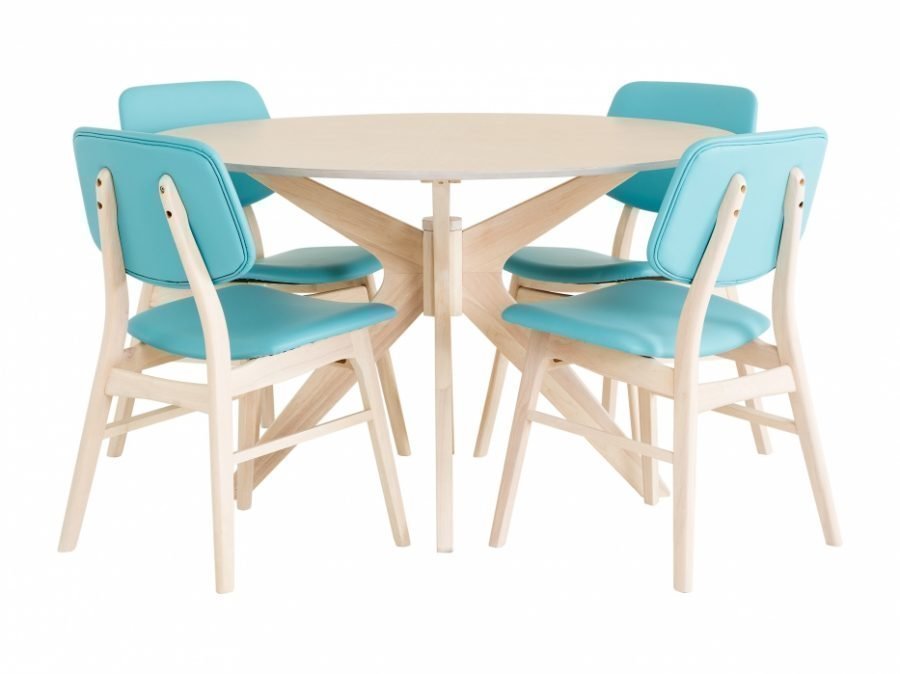 Jane Pöytä 120 Luonnonvärinen + 4 Tuolia Sininen/Luonnonvärinen
