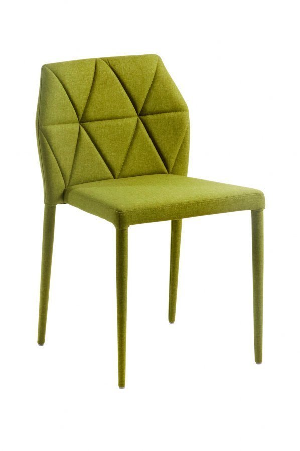 Kangasverhoiltu ja pehmustettu tuoli. Teräsjalat, jotka on päällystetty samalla materiaalilla. Korkeus 79 cm Leveys 48 cm Syvyys 54 cm