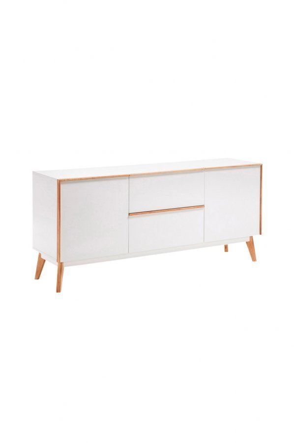 Senkki mattapintaista MDF-levyä. Jalat, runko ja vedin tammea. Korkeus 72 cm Leveys 160 cm Syvyys 42,5 cm