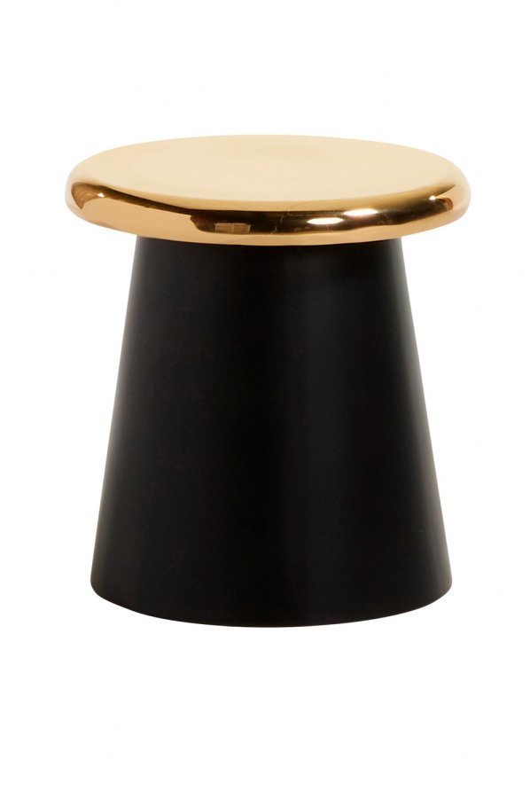 Sivupöytä kiiltävää messinkiä ja mattapintaista, mustaa metallia. Korkeus 41 cm Leveys 41 cm Syvyys 41 cm