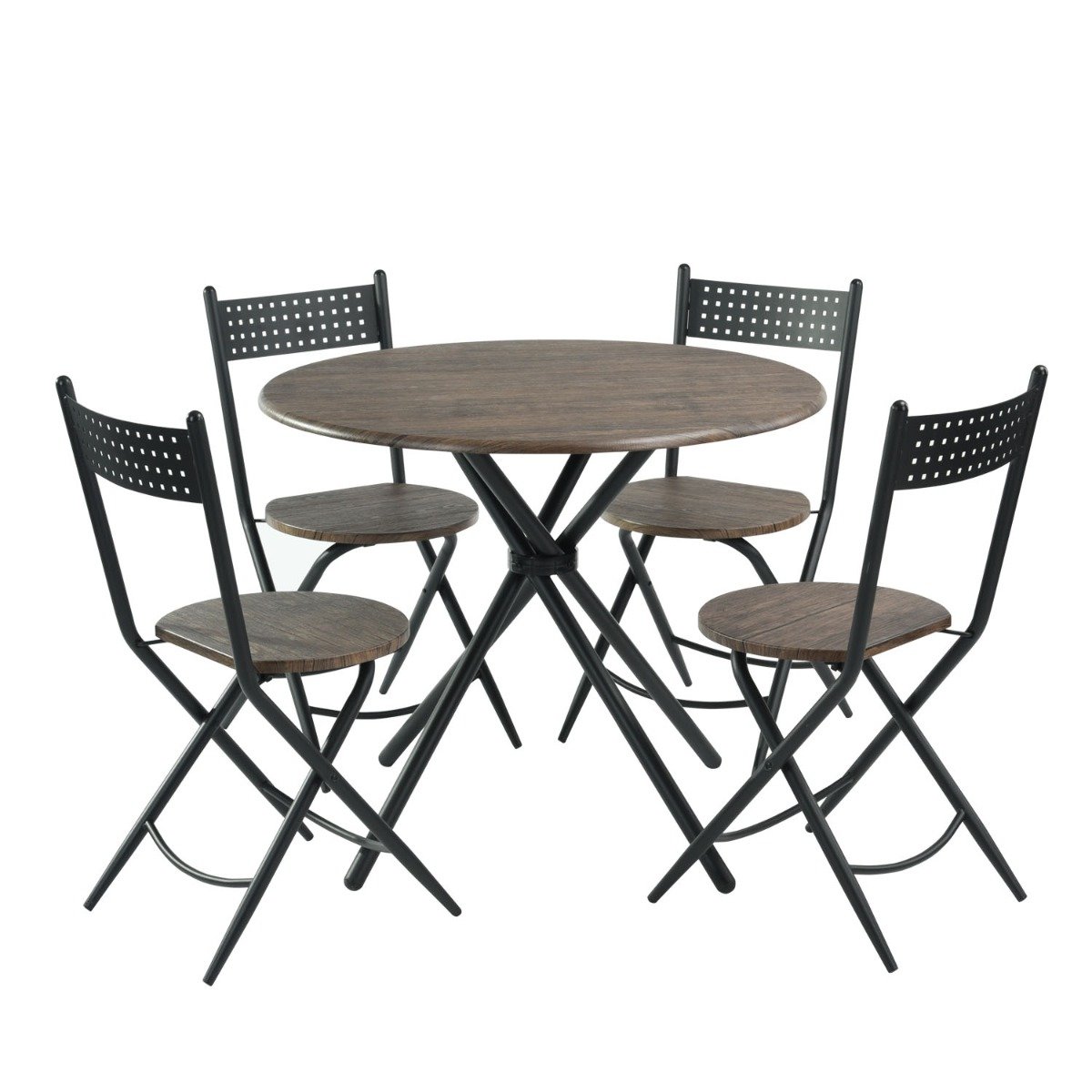 Edullinen Julia-ruokaryhmä neljälle. Sis. pyöreän pöydän ja 4 kokoontaitettavaa tuolia. Metallirunko. Ostoksille!