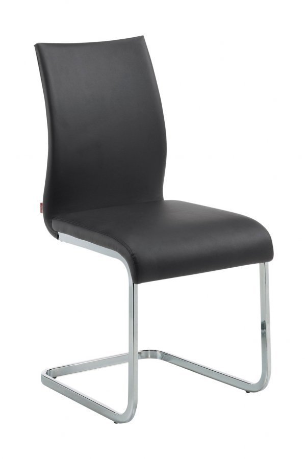 Tikattu tuoli synteettistä nahkaa. Krominväriset metallijalat. Korkeus 93 cm Leveys 43 cm Syvyys 60 cm