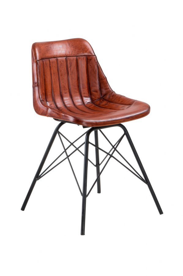 Pehmustettu tuoli aitoa nahkaa. Jalat jauhemaalattua terästä. Korkeus 79 cm Leveys 50 cm Syvyys 53 cm