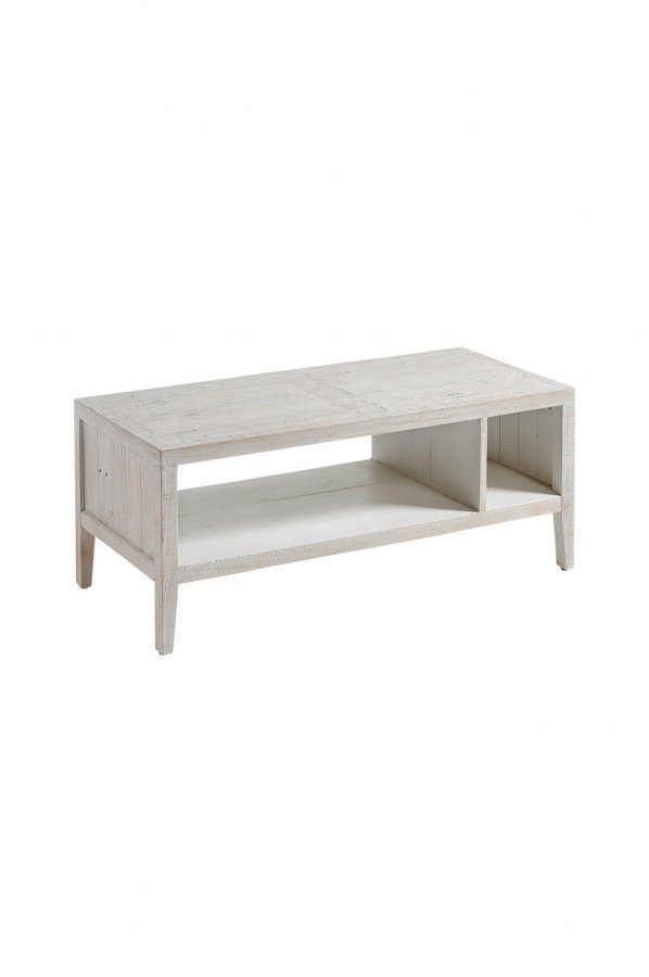 Sohvapöytä kierrätettyä tammea. Käsinhiottu ja maalattu antiikkivalkoisella, vesipohjaisella maalilla. Korkeus 45 cm Leveys 110 cm Syvyys 50 cm