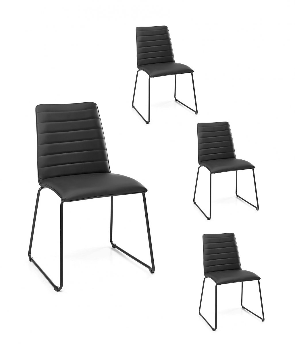 Musta moderni tuoli. Helppohoitonen keinonahka verhoilu, joka kestää käyttöä ja pyyhkimistä. Tuolin jalat metallia.