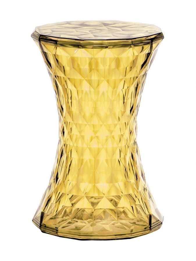 Tiimalasin muotoinen jakkara heijastaa kauniisti valoa. Jakkara toimii hyvin myös yöpöytänä tai pienenä tasona. Korkeus 45 cm, halkaisija 30 cm.