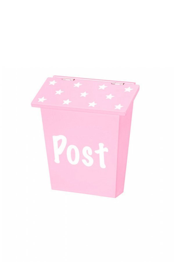 Kids Concepin vaaleanpunainen pieni postilaatikko, jossa on valkoiset tähdet. Täydellinen esimerkiksi pienten kirjeiden, lehtien ja muun sellaisen säilyttämiseen. Materiaali: puuta Mitat: 23 x 20 cm
