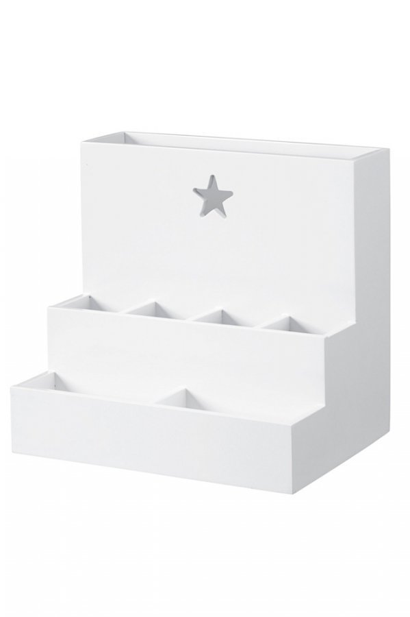 Tyylikäs ja käytännöllinen Kids Concept -säilytyslokerikko työpöydälle. Monta lokeroa kynille ja muille tarpeellisille tavaroille. Mitat: 24×22 cm Materiaali: puuta