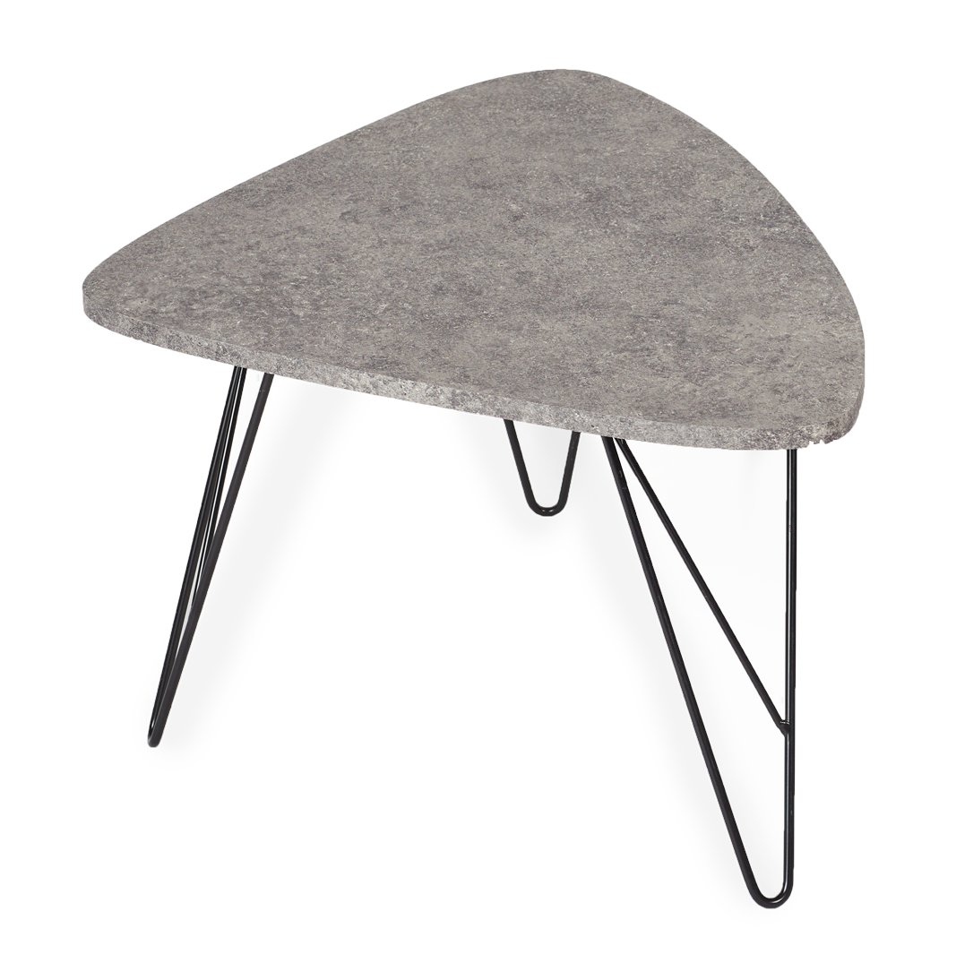 Modernin Kiwi 3 -sohvapöydän kansi on tyylikästä pinnoitettua kivijäljitelmää, jalat taivutettua metallia. Klikkaa ostoksille!