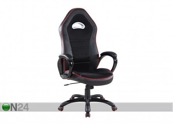 Työtuoli on verhoiltu mustalla keinonahalla ja mustalla kankaalla – istuinkorkeuden säätö kaasupumppumekanismilla -… Lue lisää »