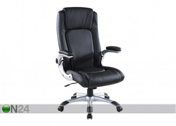 Työtuoli on verhoiltu mustalla keinonahalla – istuinkorkeuden säätö kaasupumppumekanismilla – lukittava keinumekanismi -… Lue lisää »