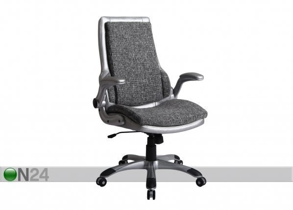 Työtuolin istuin ja selkänoja on verhoiltu kankaalla, istuin hopeansävyisellä keinonahalla – istuinkorkeuden säätö… Lue lisää »