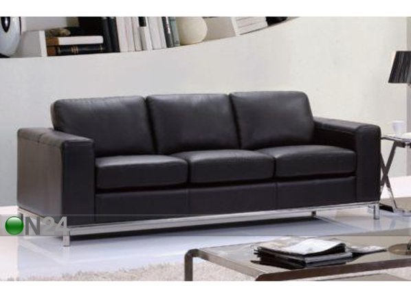 Tyylikäs kolmenistuttava sohva – jalat ovat metallia – istuinosa aitoa läpivärjättys nahkaa, tausta… Lue lisää »