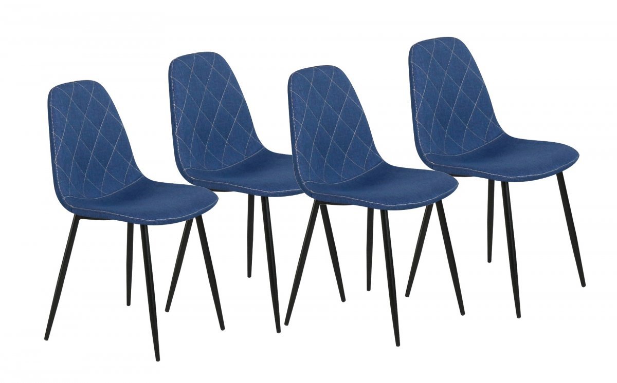Moderneissa Koo-sarjan ruokapöydän tuoleissa on kangasverhoiltu istuin- ja selkänoja. Väri: sininen. Ostoksille!