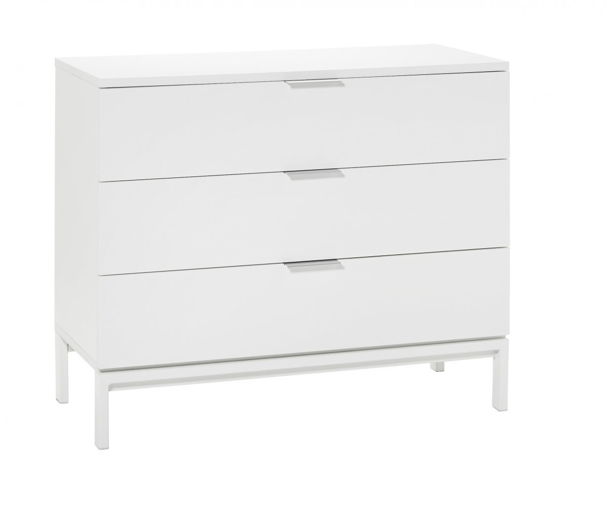 Valkoisessa Koodi Cathy -pikkulipastossa on metallijalat ja -vetimet. Ostoksille!