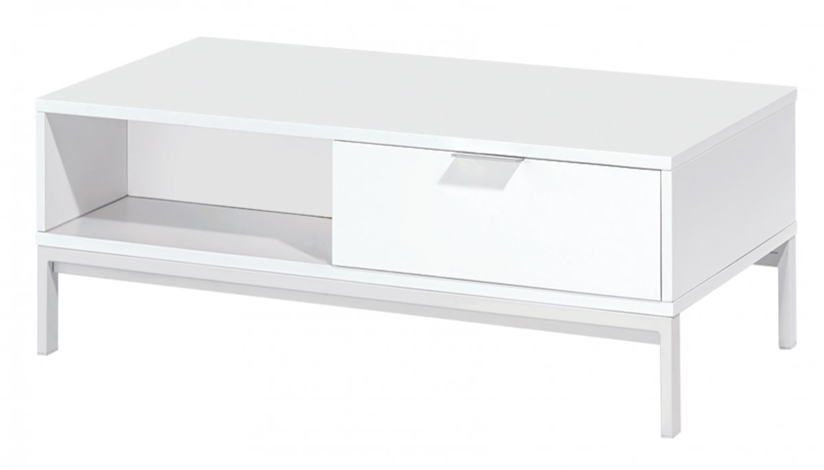 Matalassa Koodi Cathy -sohvapöydässä on metallijalat ja -vetimet. Väri: valkoinen. Ostoksille!