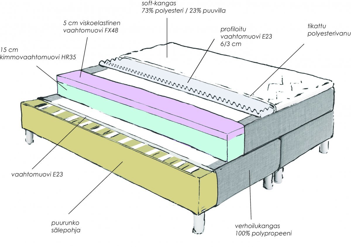 Koodi Easy Duo -jenkkisängyssä on viskoelastinen patja ja sijauspatja, jotka reagoivat kehon lämpöön ja muotoutuvat tukemaan vartaloa yksilöllisesti. Tilaa!