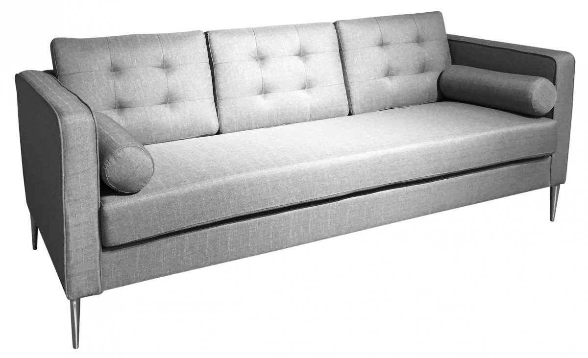 Vaaleanharmaassa Koodi Jemina -nojatuolissa on istumatilaa 3:lle. Selkänojassa on kauniit koristenapit. Tilaa nyt!