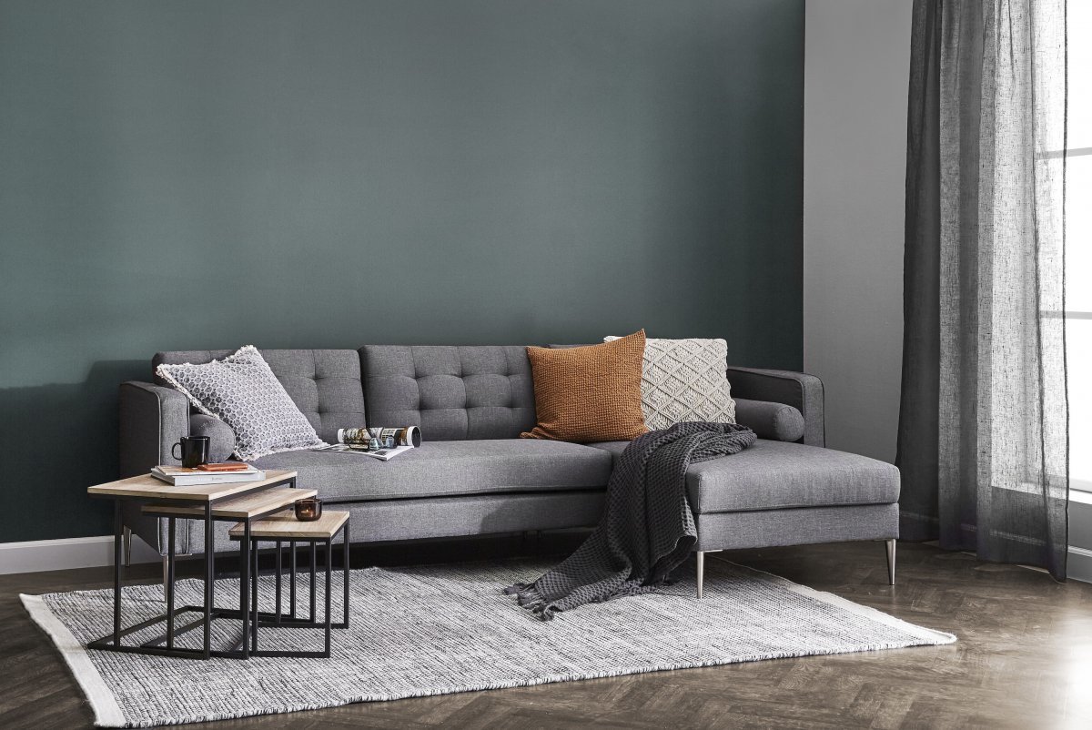 Tummanharmaassa Koodi Jemina -divaanisohvassa on istumatilaa 3:lle. Selkänojassa on kauniit koristenapit. Tilaa nyt!