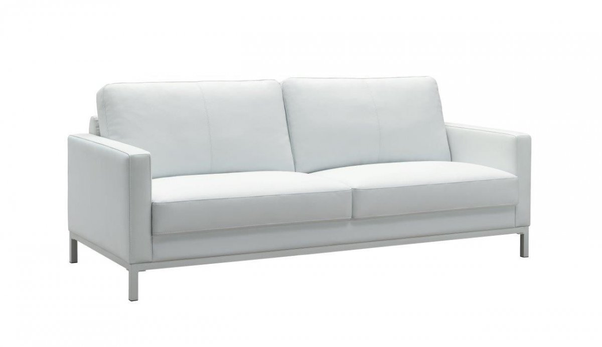 Näyttävä KOODI Oslo -nahkasohva on ihanan pehmeä. Sohvaa kiertävä metallikehikko antaa sille modernia ilmettä. Valkoinen.