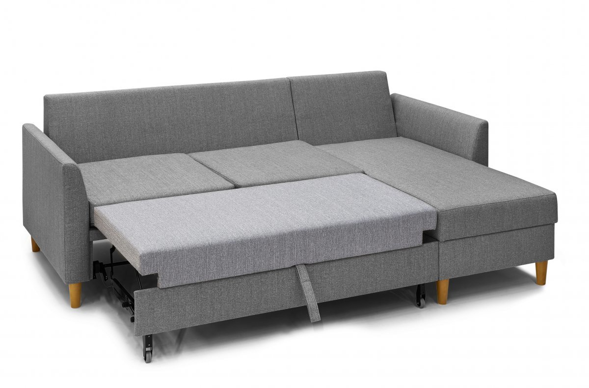 Harmaassa Koodi Saaga -vuode/kulmadivaanissa on no-zag-jousitus. Vuodevaatelaatikko, reilu varavuode. Ostoksille!
