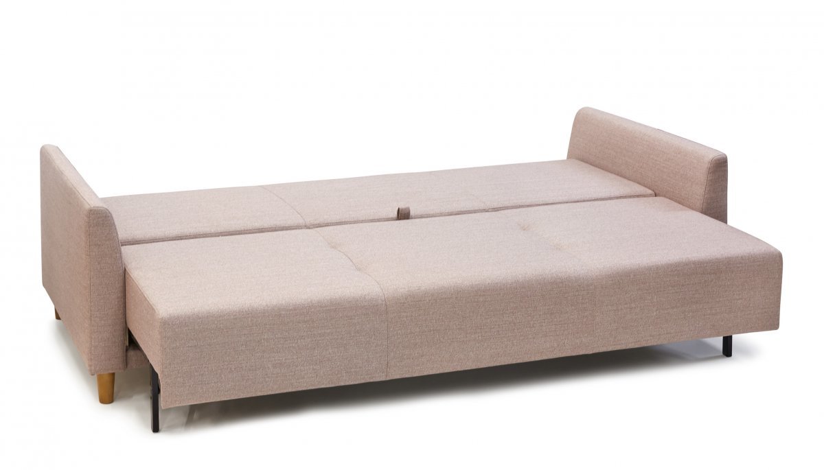 Vanhan roosan värinen Koodi Saaga -vuodesohva kolmelle. No-zag- jousitus. Selkäosassa irtotyynyt. Vuodevaatelaatikko. Tilaa!