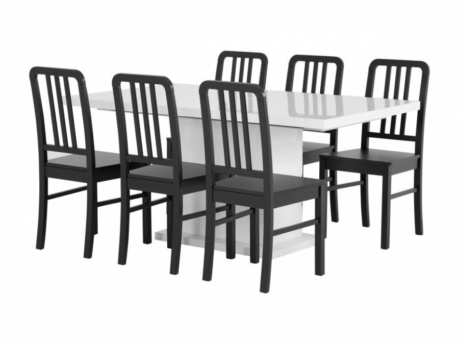 Kulmbach Pöytä 160 Valkoinen + 6 EVElina Tuolia Musta