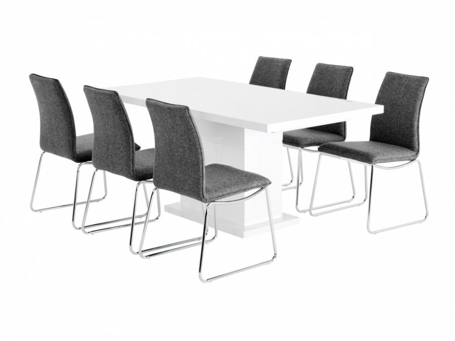 Kulmbach Pöytä 160 Valkoinen + 6 Ljungan Tuolia Harmaa
