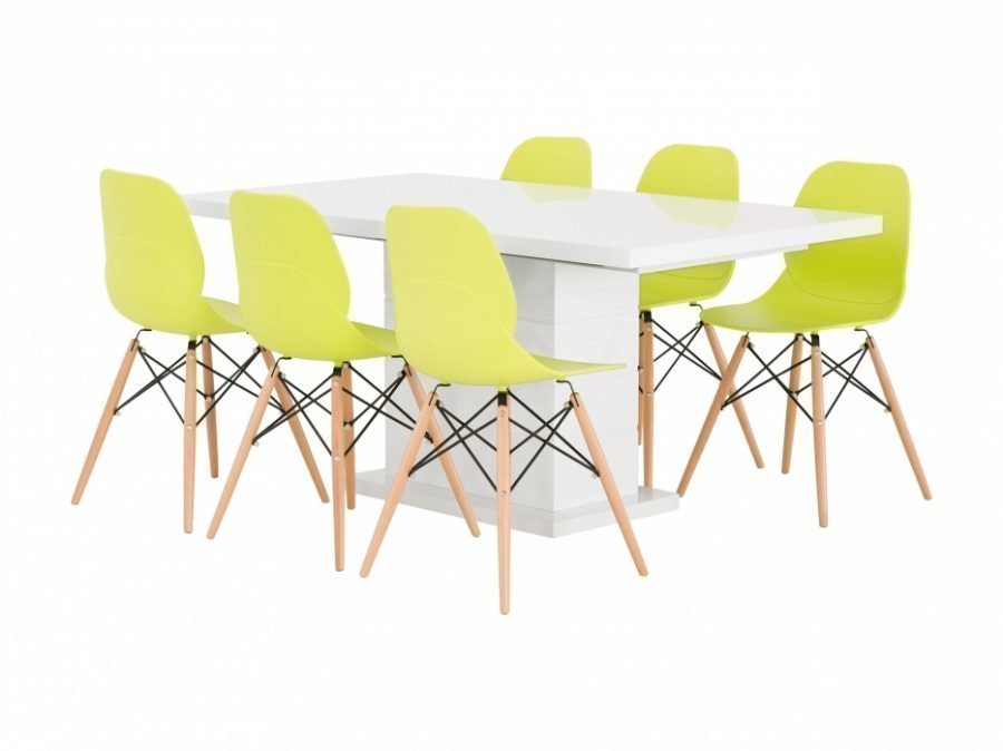 Kulmbach Pöytä 160 Valkoinen + 6 Rana Tuolia Lime/Puujalat