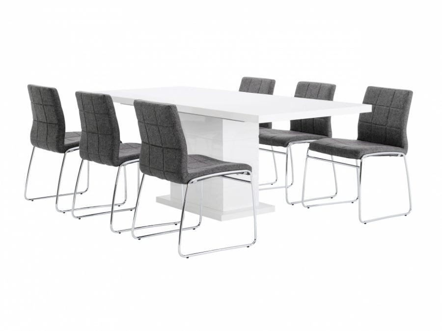 Kulmbach Pöytä 160 Valkoinen + 6 Viskan Tuolia Harmaa